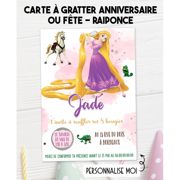 Carte d'invitation baptême ou anniversaire à gratter - Raiponce